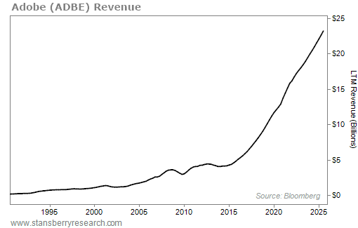 The results speak for themselves… Since 2017, Adobe has grown its revenues at a 17% compound annual growth rate (“CAGR”).