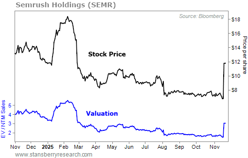We thought that investors had gotten far too pessimistic on Semrush and recommended Semrush last August in our flagship newsletter, Stansberry’s Investment Advisory.