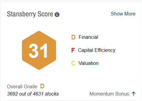 That’s why the Stansberry Score gives SoundHound a “D” grade, ranking it 3,680 out of 4,626 stocks.