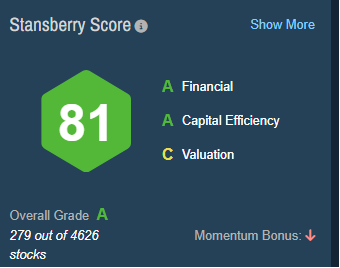 The company ranks in the top 6% of all U.S. stocks tracked by the Stansberry Score, thanks to its strong financials, capital efficiency, and dependable cash flows.