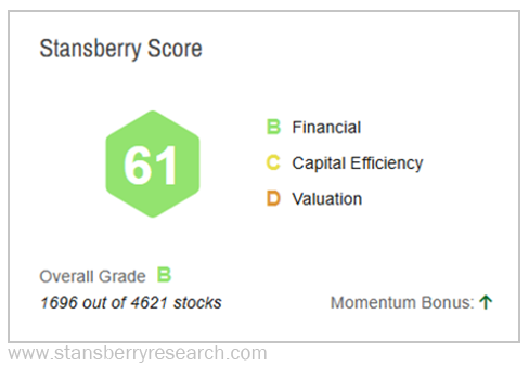 So our Stansberry Score is telling us we can find better long-term investment opportunities.