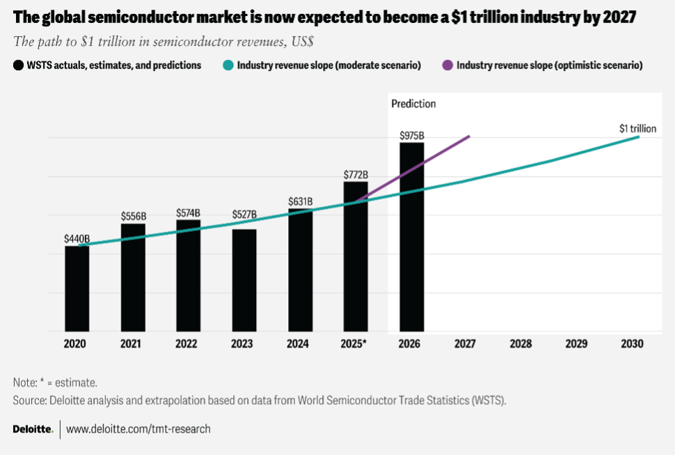 As artificial intelligence (“AI”) adoption continues to grow, the semiconductor industry is reaping the benefits thanks to unprecedented market expansion. According to Deloitte research, generative AI chips alone will near $500 billion in revenue in 2026… roughly half of global chip sales.