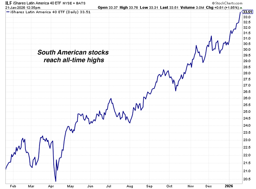 Yesterday’s “stress test” sent a clear message that the uptrend in South American stocks is one of the market’s strongest themes.