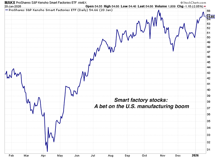 But don’t forget about “smart factory” stocks to invest in a U.S. industrial renaissance….