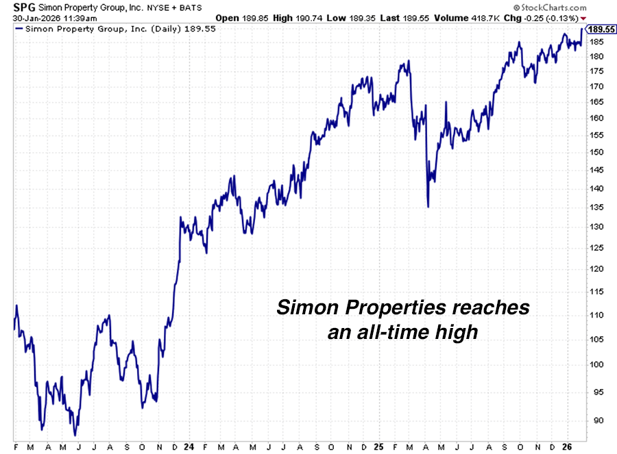 Simon Properties Group (SPG) – America’s largest shopping mall operator – reached an all-time high