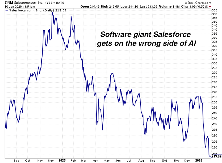 The biggest thing I’m taking away from this software sector meltdown is to be paranoid … especially in technology companies. Never get too comfortable with your stock positions. In the age of blazing technological progress, today’s seemingly strong company can be tomorrow’s roadkill.