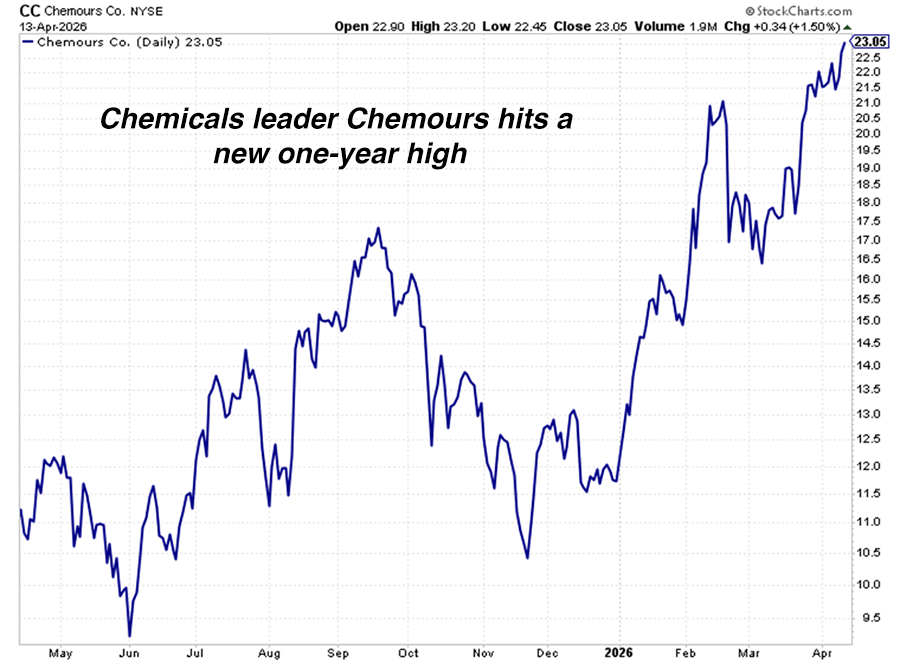 Chemical leader Chemours (CC) is up 37% since our note and just reached a new one-year high. Fellow leader Element Solutions (ESI) is up 15% since our note and just reached a new one-year high. This strength makes them clear market leaders.
