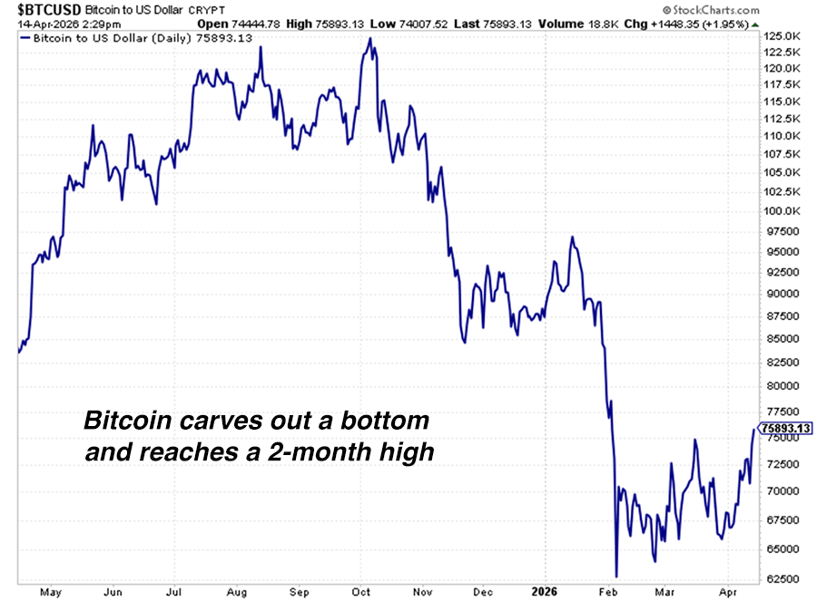 Our March 13 recommendation to be bullish on Bitcoin is off to a solid start. This week, Bitcoin broke above the $75,000 level to reach its highest point in over two months.