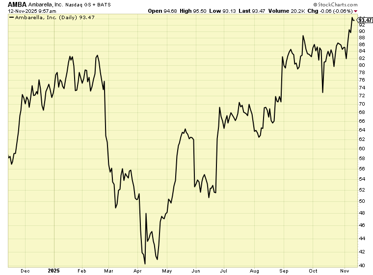 This week, Ambarella (AMBA) notched a new 1-year high.