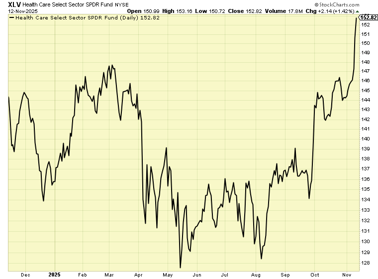 Since the start of November, the SPDR Health Care Fund (XLV) has surged 5.9% while staging a major 1-year upside breakout.