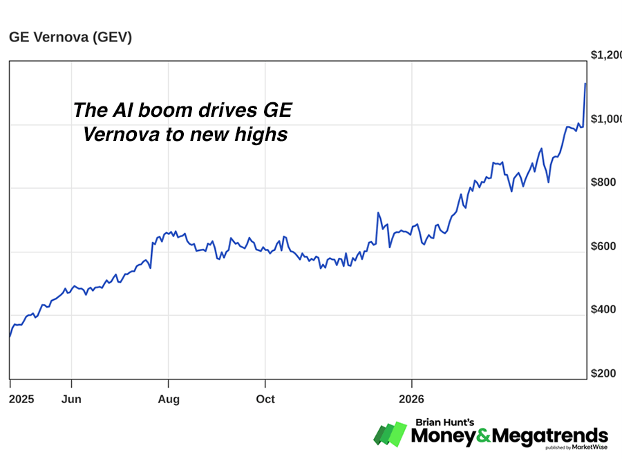 In the research note above, I detailed how the world’s largest tech companies are in a giant race to build the best AI models and infrastructure. This race is driving the largest collective investment effort in all recorded history… and driving dozens of giant stock winners, including GE Vernova.