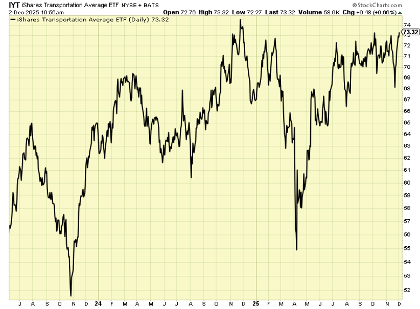It’s fair to say IYT is a “highly economically sensitive” fund. Common sense tells us that the components of IYT do well when America is making stuff, buying stuff, and transporting stuff. The components of IYT do poorly when the opposite is true.