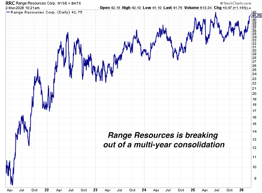 At least, that’s what the market is telling us today. As you read this, two of America’s largest natural gas producers – Range Resources (RRC) and EQT (EQT) – are trading higher and are at or near new all-time highs.