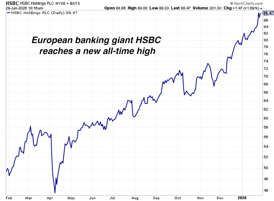 These are among the world’s largest, most important financial companies. You can tell by their names that they operate across Europe, North America, South America, and Asia. And they are all registering new highs. This is a big, big deal.