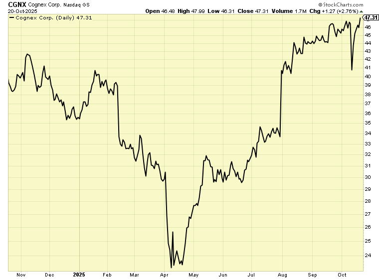 The market agrees with this outlook. This week, machine vision leader Cognex (CGNX) broke out to a new 52-week high. Cognex makes sensors and software for factory robots.