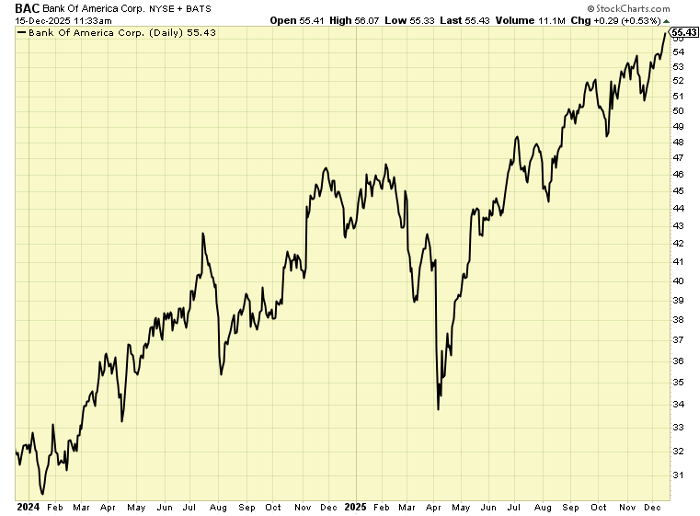 It’s not just automakers flashing bullish signals today. Many of America’s most important financial companies reached new highs today. That’s bullish as well.
