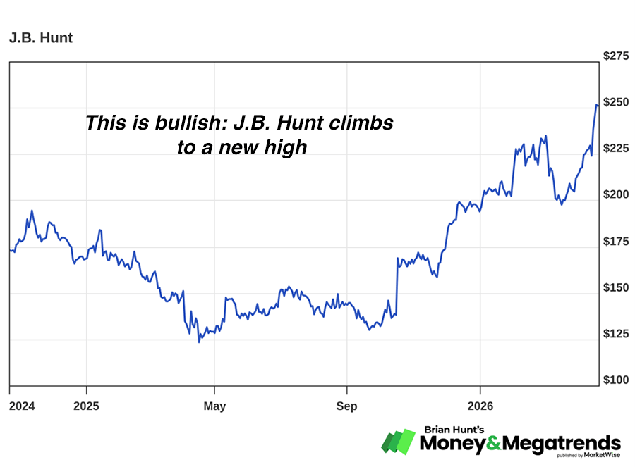 This means the stocks of large trucking companies like J.B. Hunt, Old Dominion, Saia, and Knight-Swift are “highly economically sensitive.” These stocks do well when America is making things, buying things, building things, and transporting things.