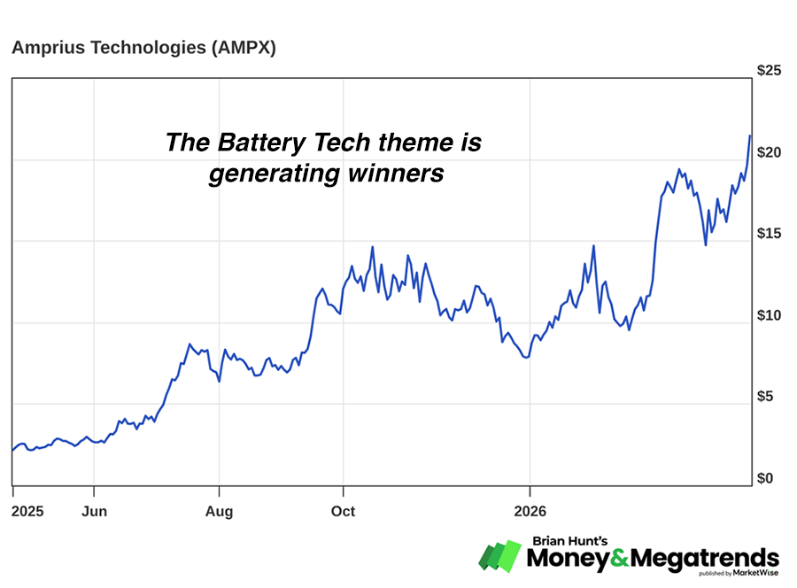 EnerSys and Amprius are up 42% and 107%, respectively, since our original bullish note. In addition to these two firms, stocks on your Battery Tech watchlist can include: