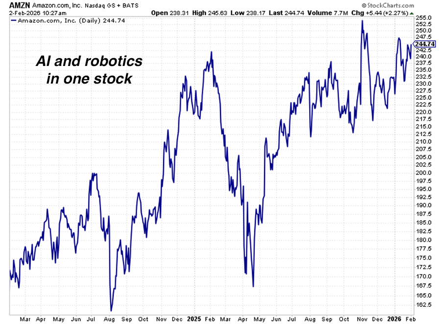 Add these robotics and AI assets to the world’s largest online retail business, and you get a pretty good bet on the future of technology in one stock. It’s no wonder Amazon is within a stone’s throw of new all-time highs. We expect to see them in 2026.