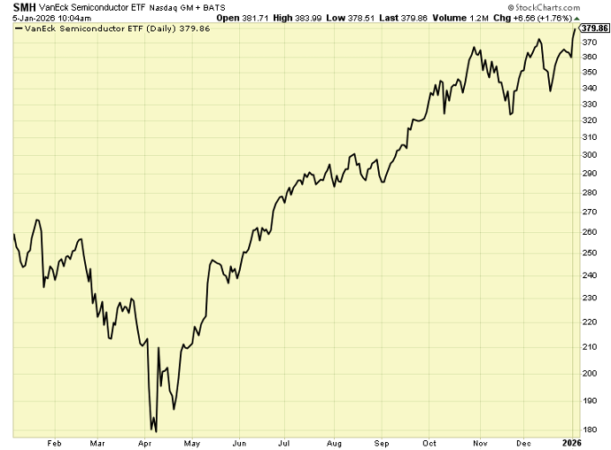 AI bulls can start 2026 with a spring in their step. After all, the VanEck Semiconductor ETF (SMH) is trading at an all-time high, and they are winning the great “AI Boom or AI Bust” debate.